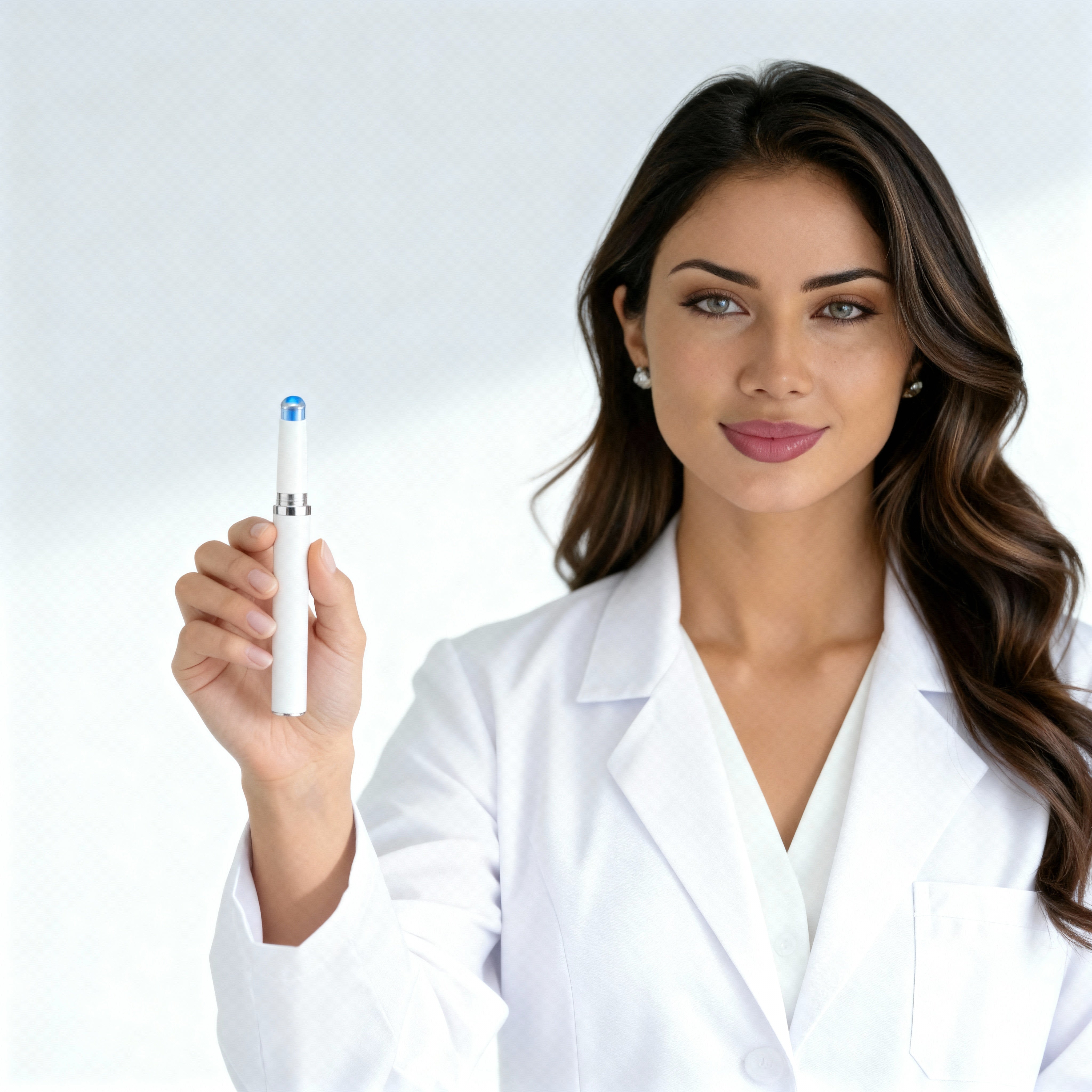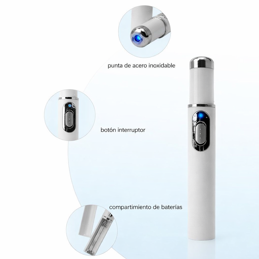 Su formato tipo bolígrafo permite una aplicación discreta y controlada, ideal para usar frente al espejo sin complicaciones. La luz azul se activa suavemente, transmitiendo una sensación de cuidado profesional, sin calor ni incomodidad